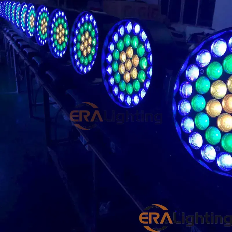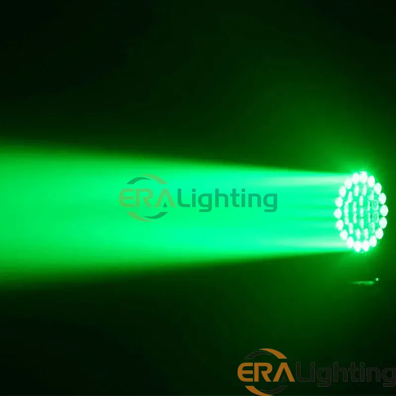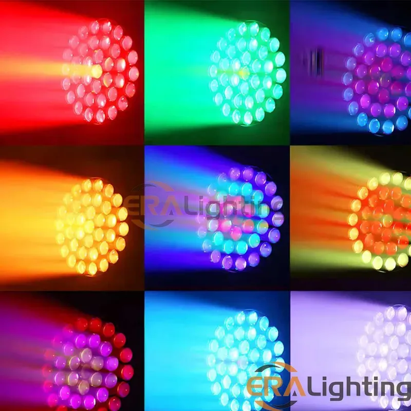 This fixture is equipped with 37x15W RGBW/Full Color Osram Ostar LEDs driven to 1A and it is a powerful LED fixture in its category offering one of the highest lumen/W ratio in the industry, through the combination of high-end LED source, new optic design, and the most advanced PSU management on the market, be able to generate incredible effects with independent controls 4 zones(from the center to the outer ring) for animation sequences of uniform or multicolored beams.