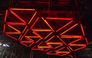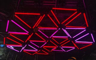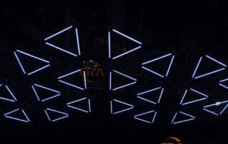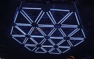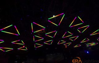 Kinetic Lighting DMX Winch Led Lifting Kinetic Tubes with 3 winches and 3 tubes installed as a triangle, which can give your stage many different amazing kinetic shapes and effects.